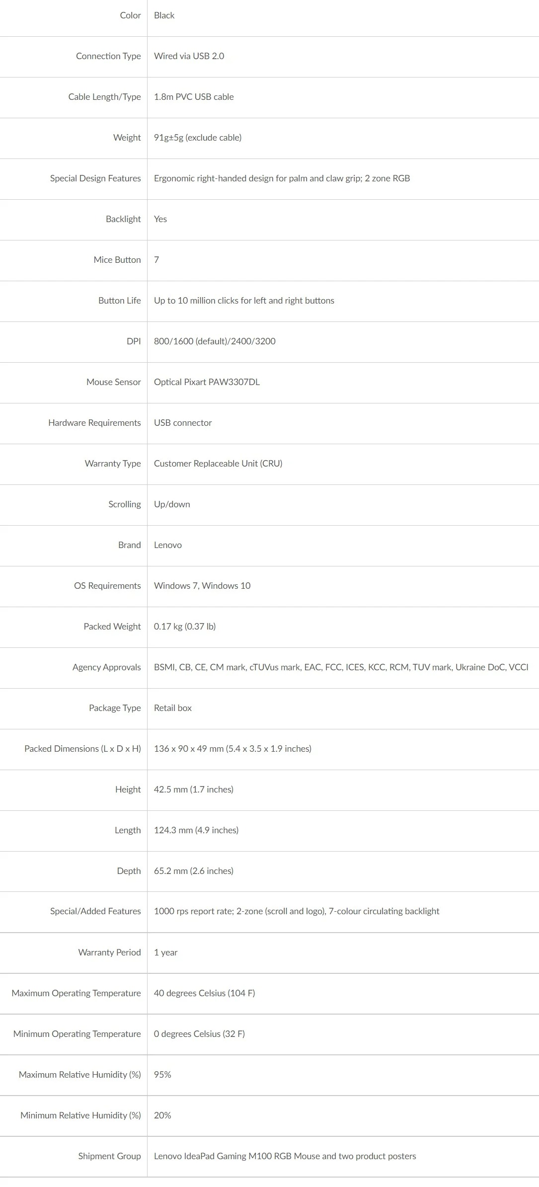 LENOVO Mouse IdeaPad Gaming M100 RGB USB 2.0 (เม้าส์เกมมิ่ง)