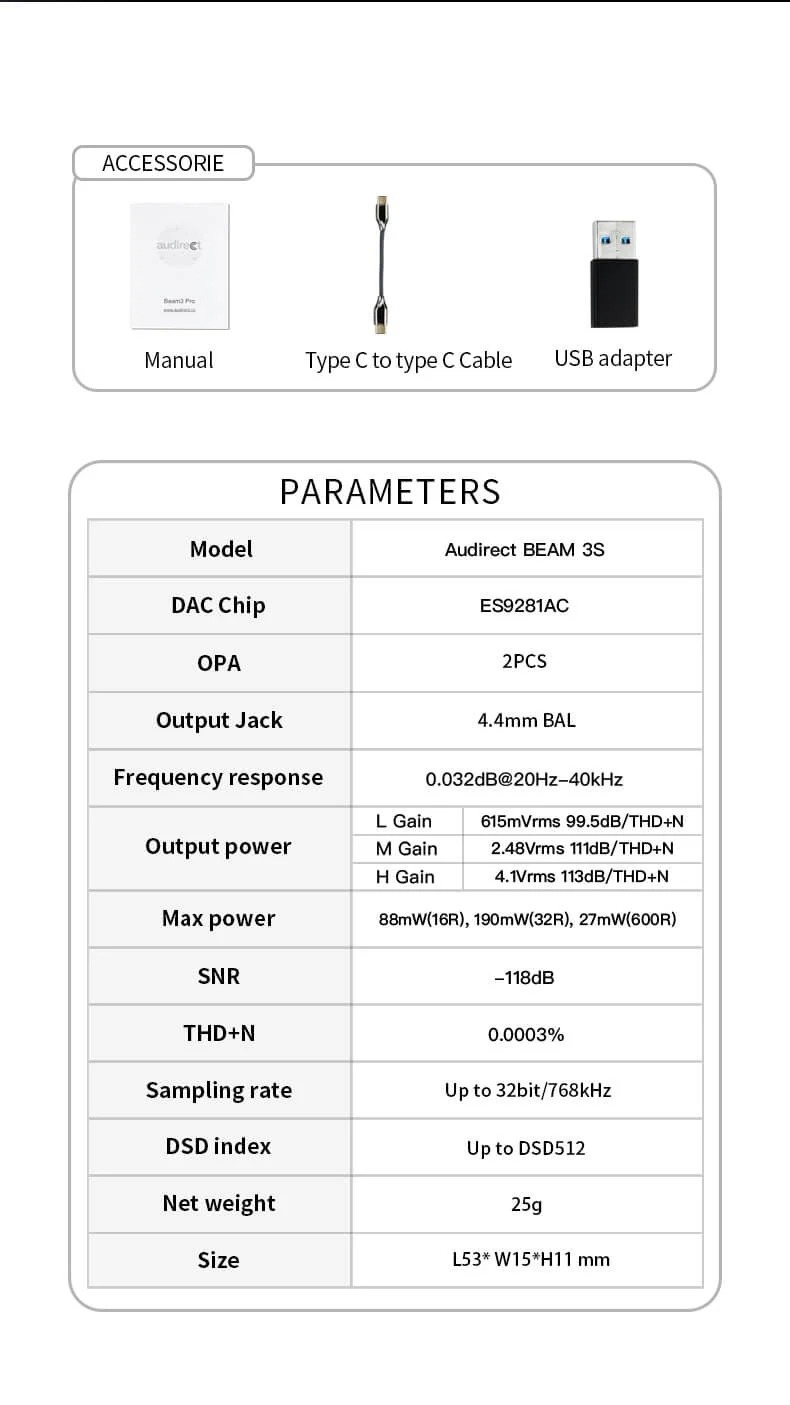 Audirect Beam 3Pro และ Audirect Beam 3S เป็นแดคแอมป์สุดคุ้ม จะไว้ใช้กับมือถือพกพาได้อย่างสะดวก หรือ ต่อเล่นกับคอมพิวเตอร์ PC หรือ MAC ก็ได้ครับ ให้สเปคจัดเต็ม ทั้งการรองรับไฟล์เพลงความละเอียดสูง และกำลังขับที่สูง ใช้งานง่าย พกพาสะดวก ให้คุณภาพเสียงที่ดีอีกด้วย เข้ากับหูฟังได้ง่ายครับ และยังทำออกมาให้นักฟังเพลงได้เลือกใช้ Beam 3 Pro สำหรับหูฟังหัวแจ็ค 3.5 และ Beam 3Sสำหรับหูฟังหัวแจ็คแบบบาลานซ์ 4.4 ตอบโจทย์การใช้งานได้เป็นอย่างดี คุ้มค่ามาก ๆ ครับ